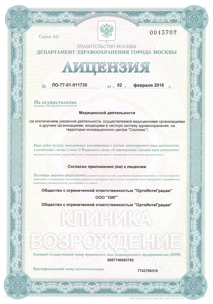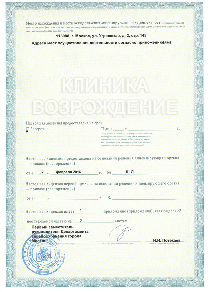 Врачи со средним стажем работы более 15 лет. Предоставление лицензий от клиник.